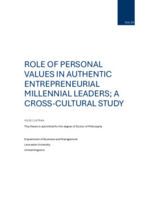 Role of personal values in authentic entrepreneurial millennial leaders; a cross-cultural study.