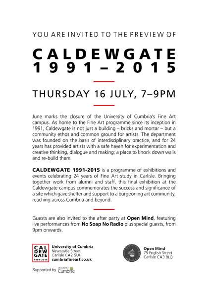 In: Caldewgate 1991-2015, 17-30 July 2015, Carlisle, UK.