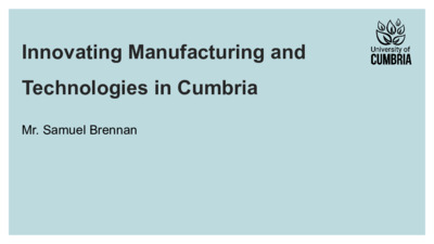 Brennan, Sam (2025) Innovating manufacturing and technologies in Cumbria. In: Innovating Manufacturing and Technologies in Cumbria, 19 November 2025, University of Cumbria, Brampton Road Campus, Carlisle, UK. (Unpublished)